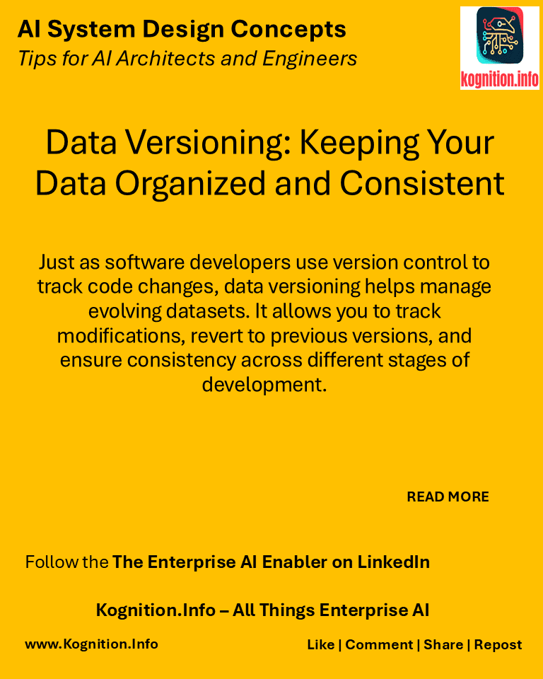 Just as software developers use version control to track code changes, data versioning helps manage evolving datasets. It allows you to track modifications, revert to previous versions, and ensure consistency across different stages of development.