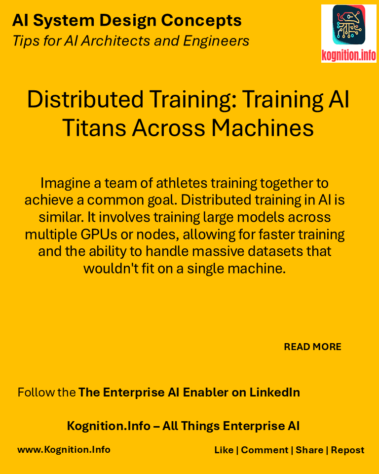 Imagine a team of athletes training together to achieve a common goal. Distributed training in AI is similar. It involves training large models across multiple GPUs or nodes, allowing for faster training and the ability to handle massive datasets that wouldn’t fit on a single machine.