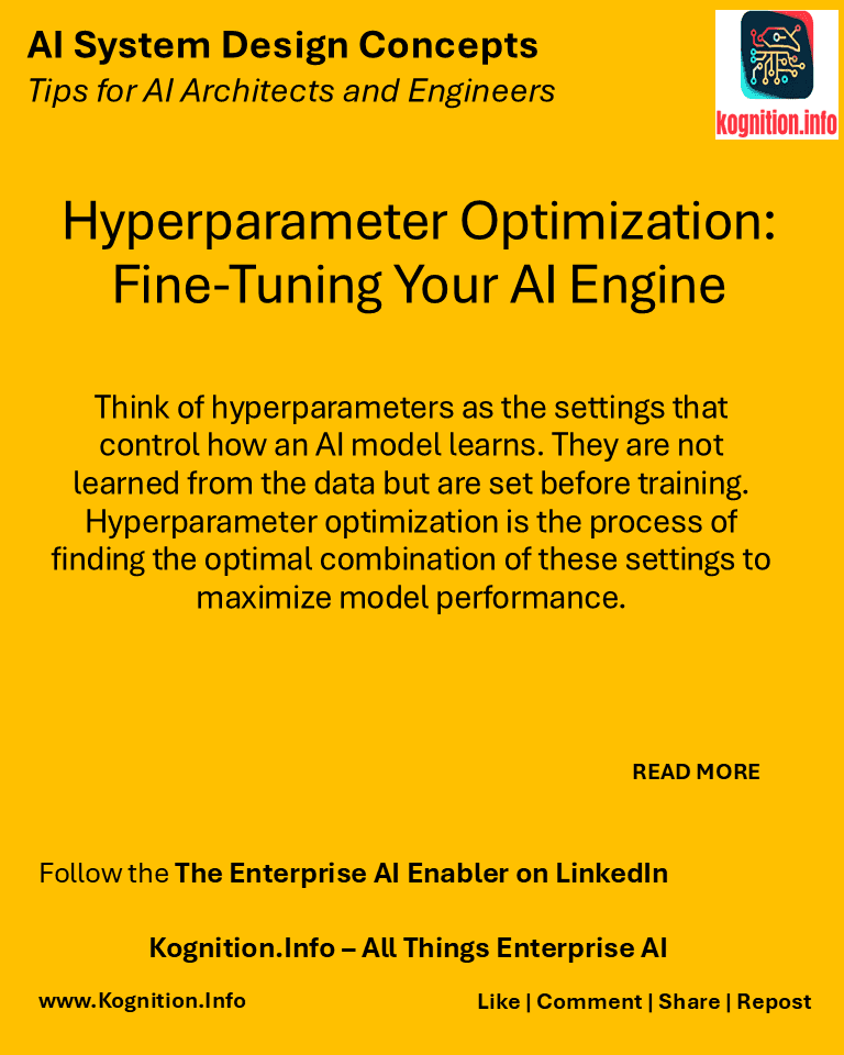 Think of hyperparameters as the settings that control how an AI model learns. They are not learned from the data but are set before training. Hyperparameter optimization is the process of finding the optimal combination of these settings to maximize model performance.