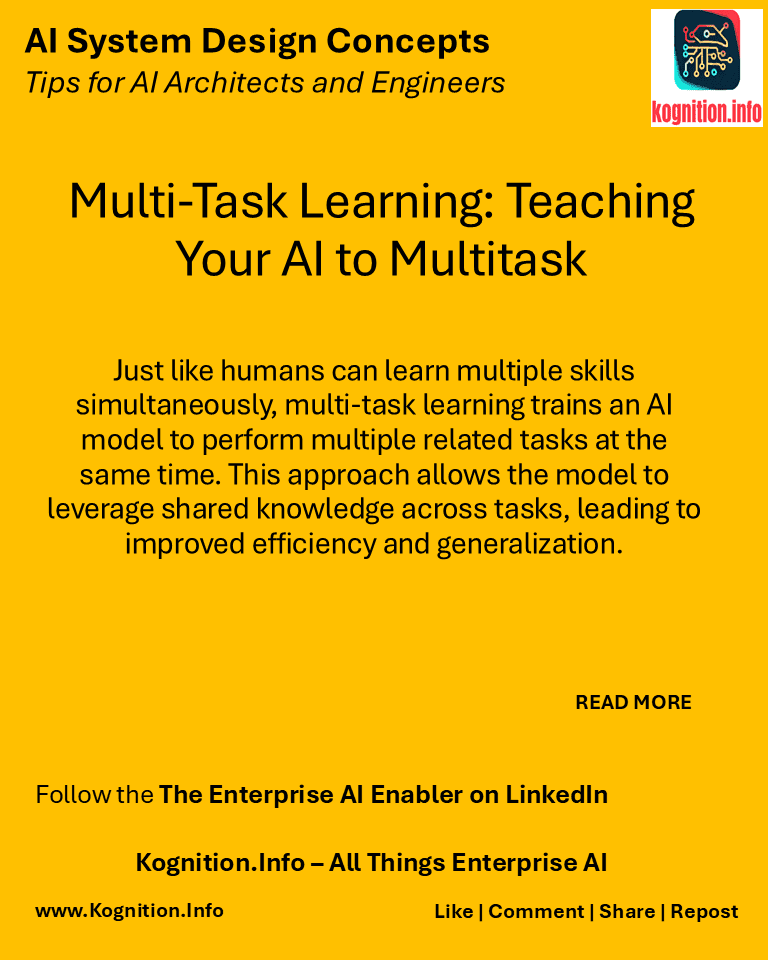 Just like humans can learn multiple skills simultaneously, multi-task learning trains an AI model to perform multiple related tasks at the same time. This approach allows the model to leverage shared knowledge across tasks, leading to improved efficiency and generalization.